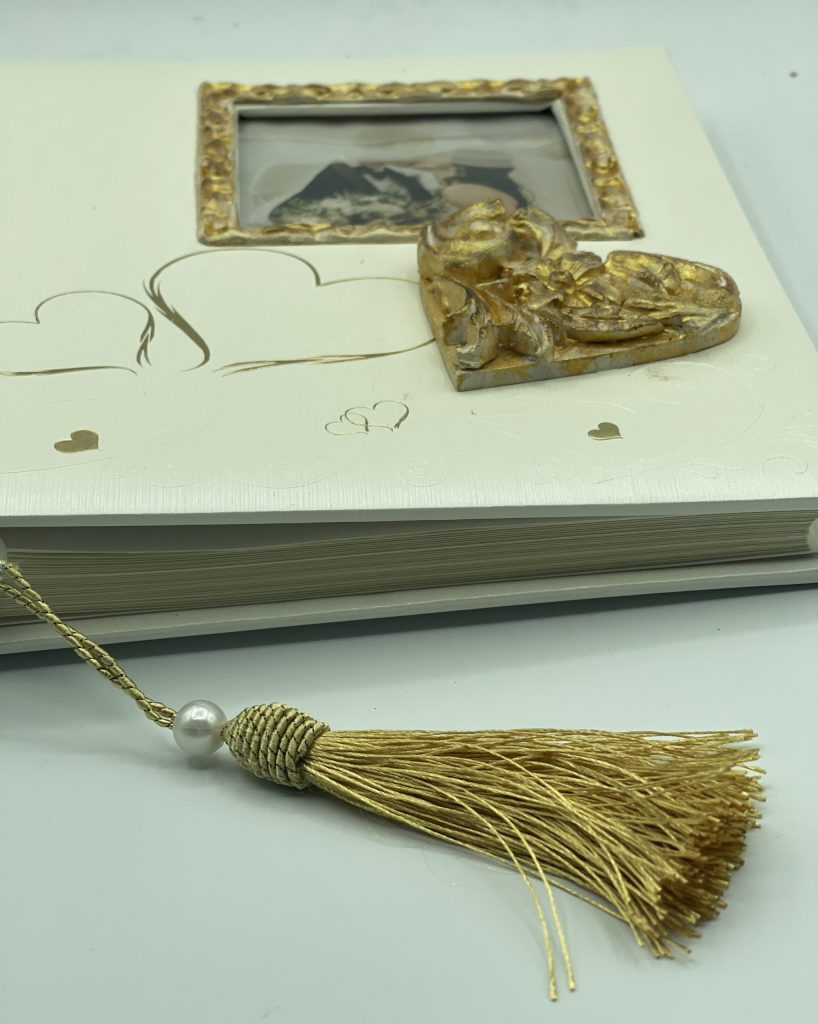 ‘Eνα άλμπουμ για τις φωτογραφίες από την σημαντική μέρα της ζωής σας. Τον γάμο σας, την τελετή που εσείς διαλέξατε ή το έγγραφο που εσείς υπογράψατε και συμβολίζει τη μέρα αυτή. Τετράγωνο διαστάσεων 25 Χ25, σε λευκό ιβουάρ χρώμα άλμπουμ 30 φύλλων για φωτογραφίες με ριζόχαρτο προστασίας ανάμεσα. Με χειροποίητη επεξεργασία, ξυλόγλυπτα διακοσμητικά, στο λευκό και χρυσό. Μία μοναδική δημιουργία για εσένα ή για να χαρίσεις σε αγαπημένους σου ένα χειροποίητο δώρο γάμου.