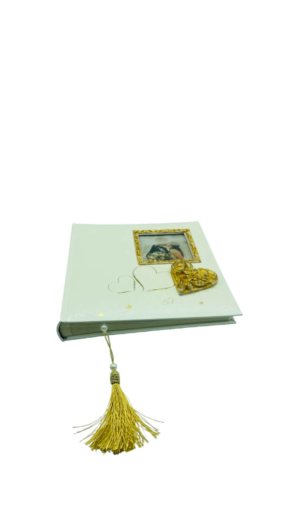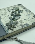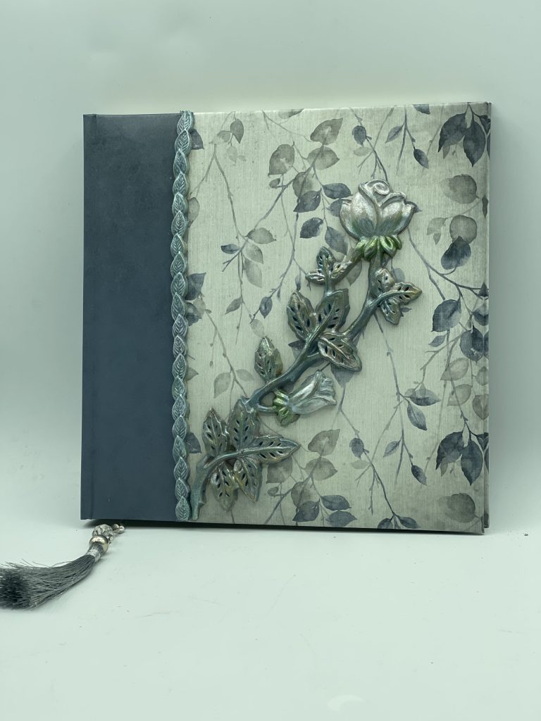 ‘Eνα άλμπουμ για τις φωτογραφίες από την σημαντική μέρα της ζωής σας. Τον γάμο σας, την τελετή που εσείς διαλέξατε ή το έγγραφο που εσείς υπογράψατε και συμβολίζει τη μέρα αυτή. Τετράγωνο διαστάσεων 25 Χ25, στα χρώματα του γκρι σιέλ με ρομαντικά λουλούδια. ‘Αλμπουμ 30 φύλλων για φωτογραφίες με ριζόχαρτο προστασίας ανάμεσα. Με χειροποίητη επεξεργασία, ξυλόγλυπτη τρέσσα και λουλούδι με βάψιμο στο χέρι. Μία μοναδική δημιουργία για εσένα ή για να χαρίσεις σε αγαπημένους σου ένα χειροποίητο δώρο γάμου.