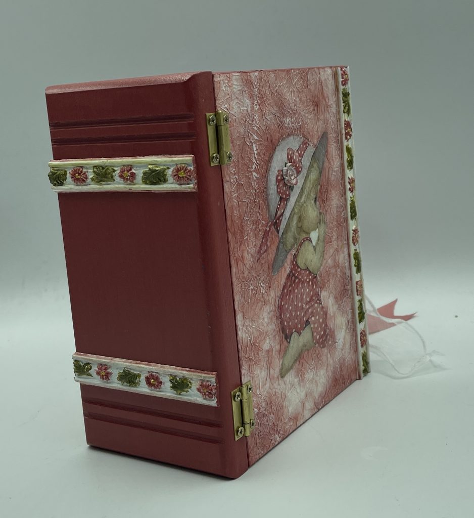 Χειροποίητο ξύλινο παιδικό κουτί διαστάσεων 20χ16χ10 με την τεχνική decoupage. Ξυλόγλυπτη τρέσσα με χειροποίητο βάψιμο στα χρώματα του κοραλί-κόκκινου. Μπορεί να μπει και το μονόγραμμα του παιδιού, για ένα προσωποποιημένο δώρο. Αν ψάχνετε δώρο για νεογέννητο ή για μικρό κοριτσάκι-παιδάκι, πέρα από ρούχα, βιβλία,παιχνίδια ένα μοναδικό χειροποίητο δώρο που θα μείνει ενθύμιο.