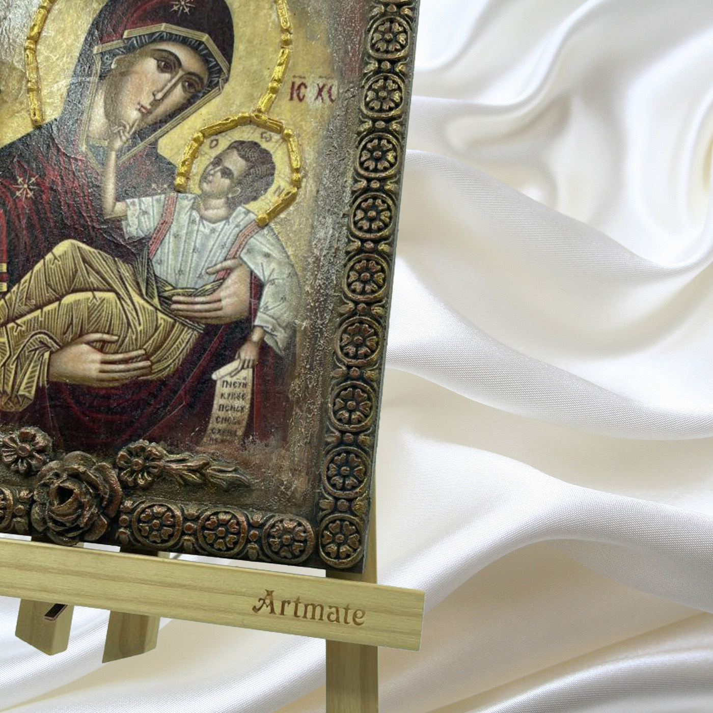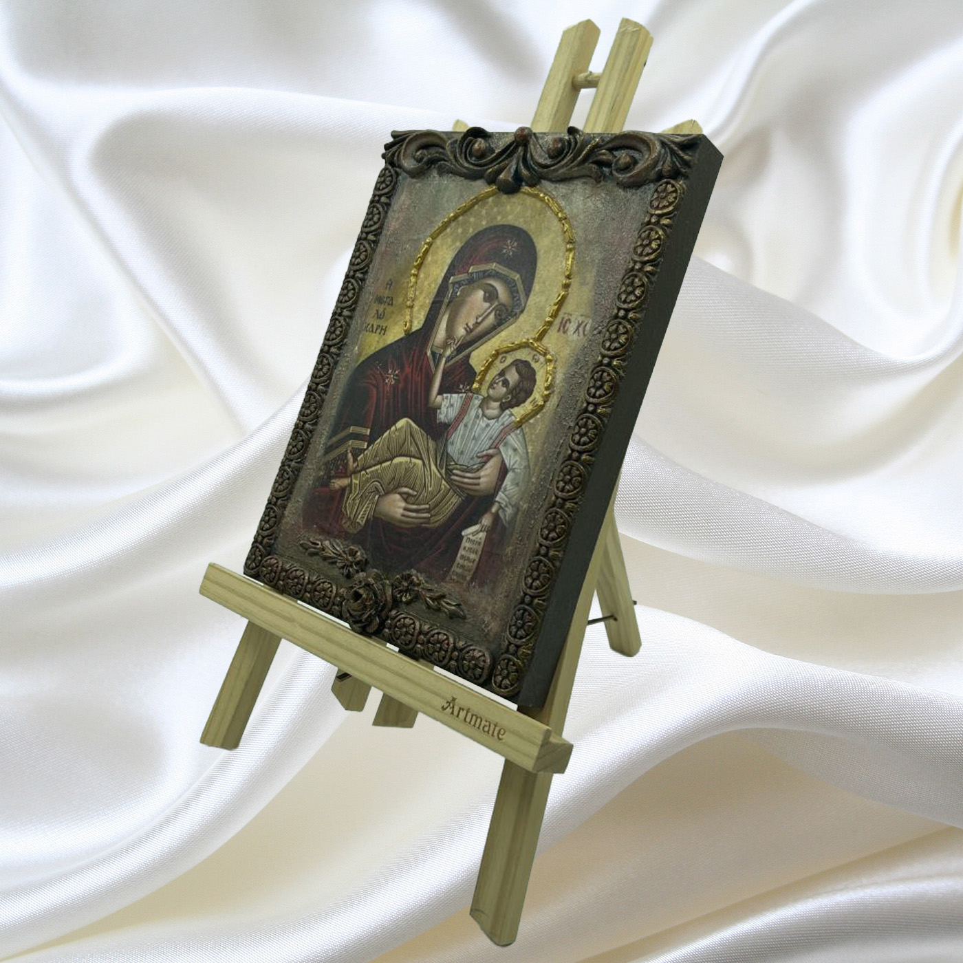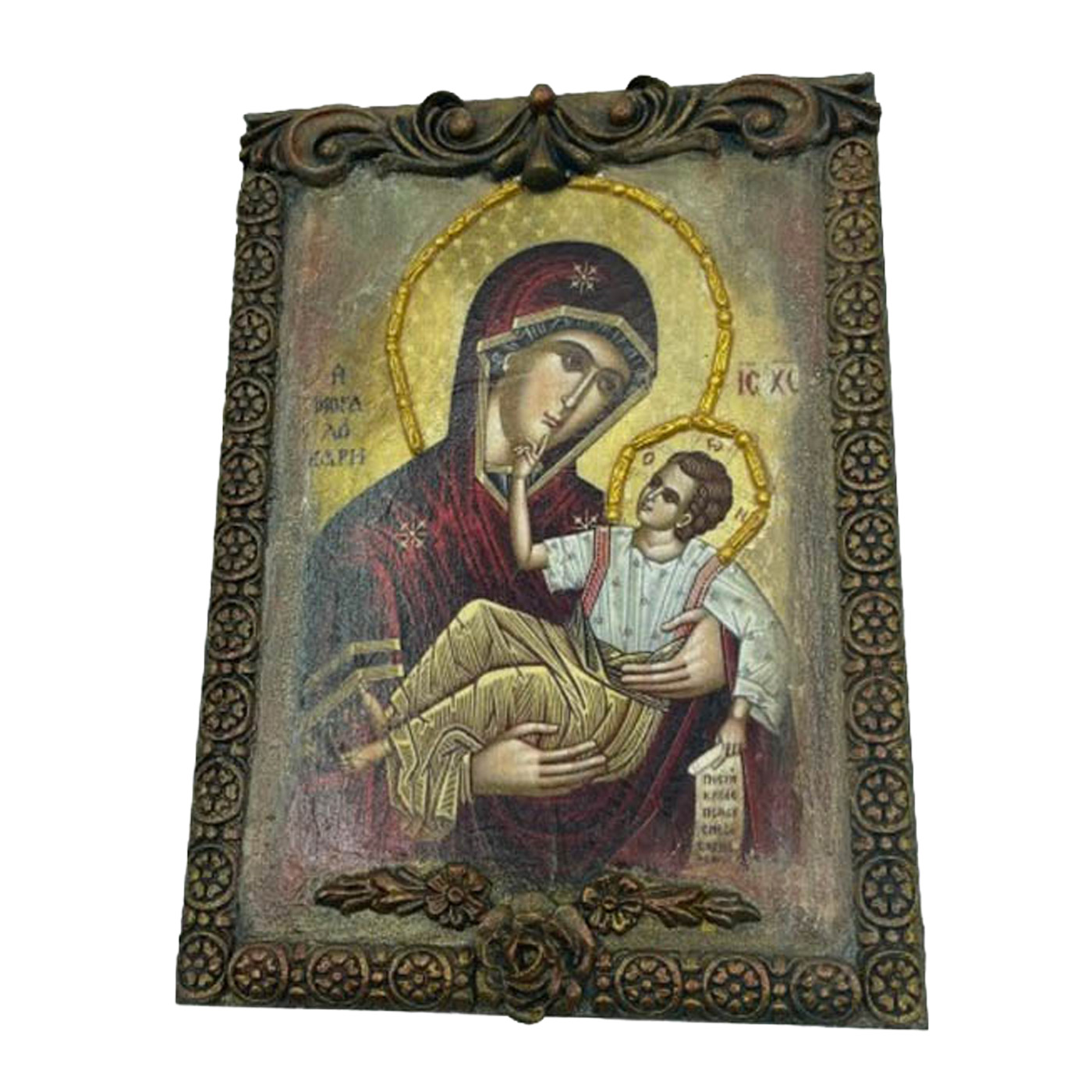 Εικόνα χειροποίητη της Παναγίας σε mdf με ξυλόγλυπτα.