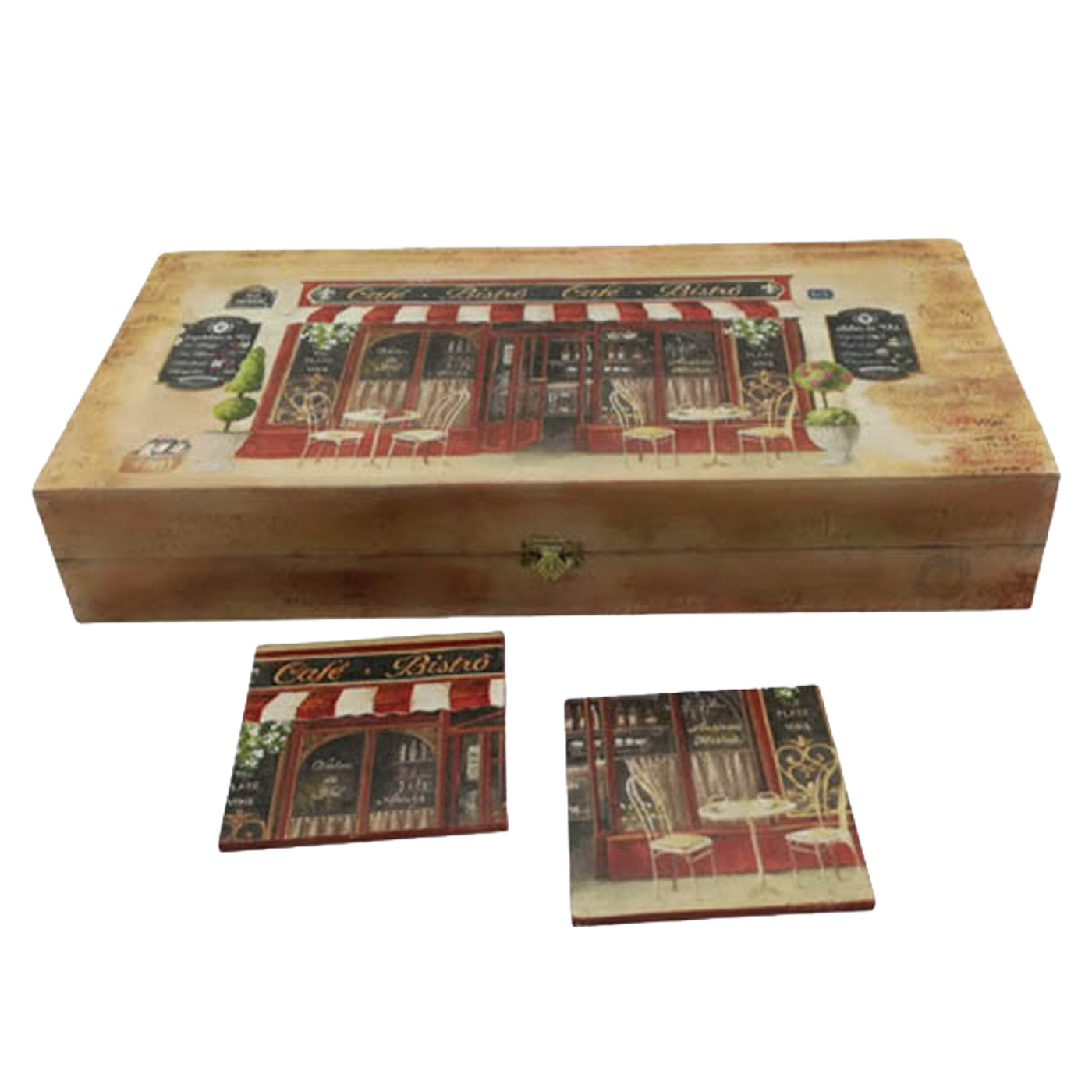 Τάβλι ξύλινο “Bistro-Cafe” διαστάσεων 38Χ19Χ5, σετ με δύο σουβέρ γι’ αυτά που συνοδεύουν το παιχνίδι σας. Αγαπημένη συνήθεια ένα ταβλάκι! Αγαπημένο και σχετικό το θέμα μας! Για εσάς τους ταβλαδόρους, για το σπίτι, τον επαγγελματικό χώρο ή για ένα χειροποίητο μοναδικό δώρο που θα αγαπήσουν.