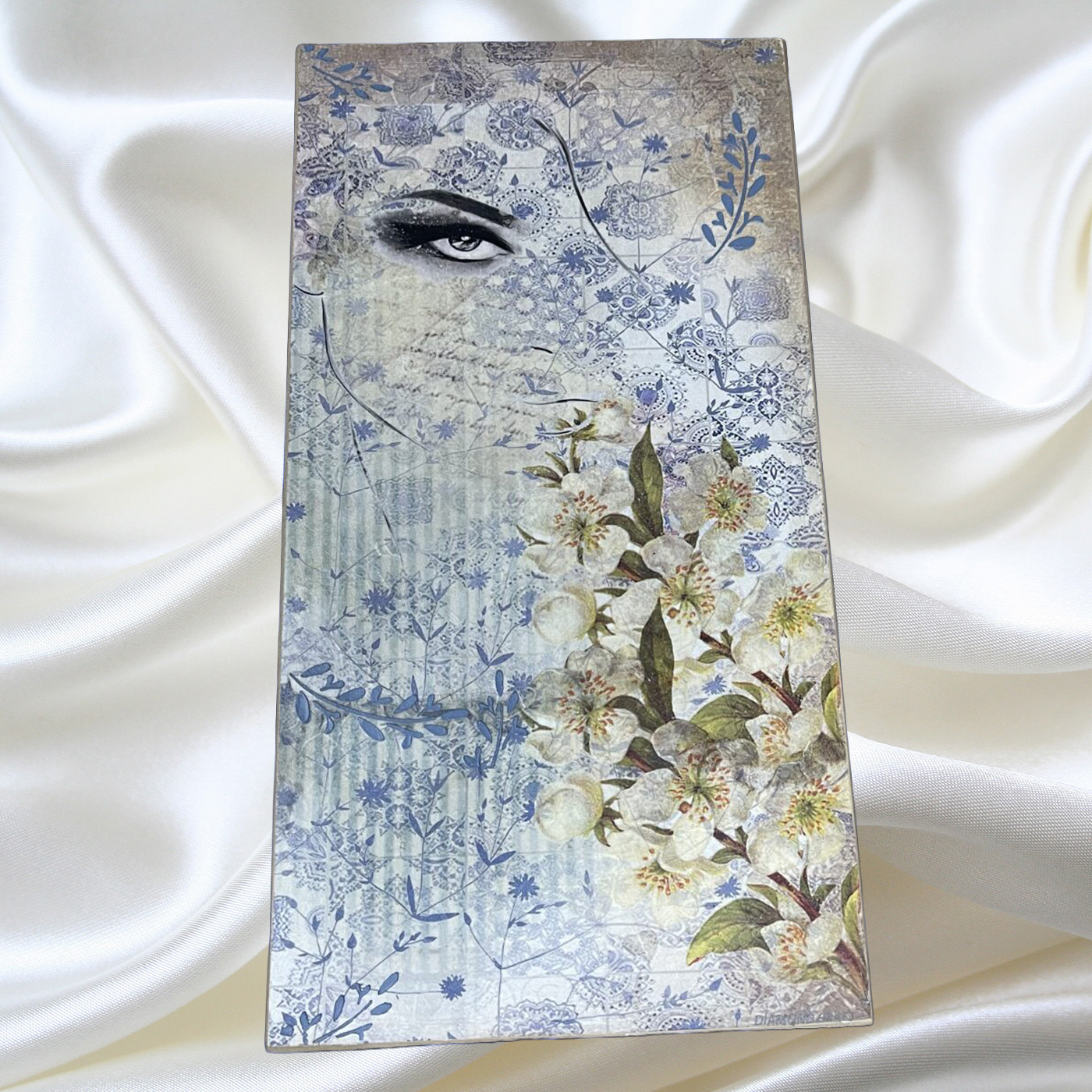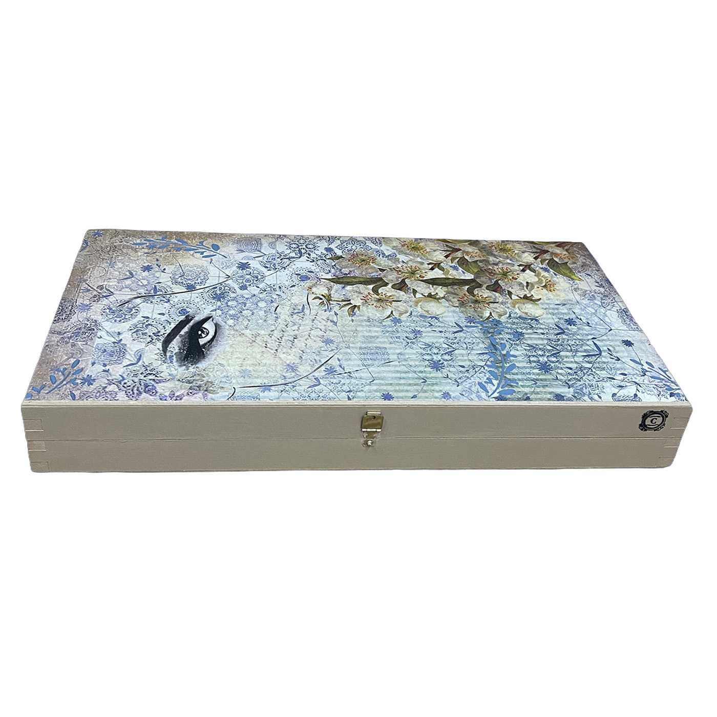 Τάβλι -Mάτι- διαστάσεων 48Χ25Χ7. Μία δημιουργική ιδέα πάνω σε τάβλι. Συμβολική η έννοιά του, με καθάριο βλέμμα, αληθινό, φωτεινό. Με μεταφορά εικόνας, επέκταση σχεδίου μικτές τεχνικές. Για εσένα που ψάχνεις το ιδιαίτερο, με ερμηνεία δική σου, που αναζητάς μοναδικά χειροποίητα δώρα. Για το σπίτι, τον επαγγελματικό χώρο, για ένα ιδιαίτερο cafe bar ή για έναν ξενώνα.