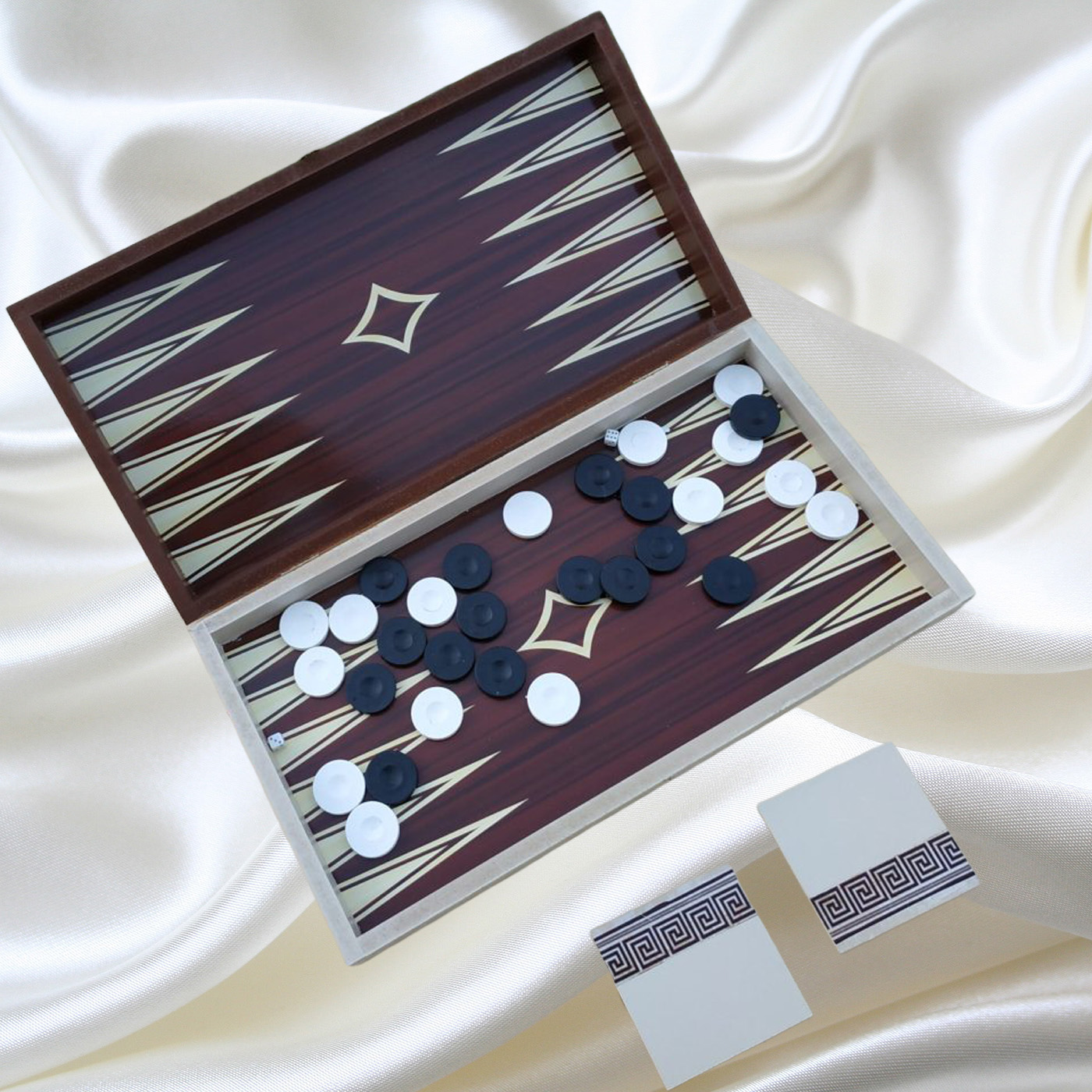Τάβλι ξύλινο διαστάσεων 48Χ25Χ7, με παραστάσεις αρχαϊκές, στα αριστοκρατικά χρώματα εκρού και καφέ. Σετ με τα δύο ξύλινα σουβέρ 10Χ10 για τα ποτά σας. Για το σπίτι, τον επαγγελματικό χώρο, ένα ιδιαίτερο cafe bar ή έναν ξενώνα. Για εσάς που ψάχνετε το ιδιαίτερο. ‘Ενα χειροποίητο δώρο στους λάτρεις του παιχνιδιού.